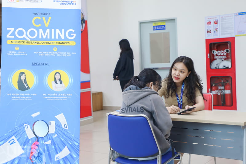 Sinh viên được giải đáp thắc mắc và chỉnh sửa CV từ các nhân sự của Navigos Group Việt Nam