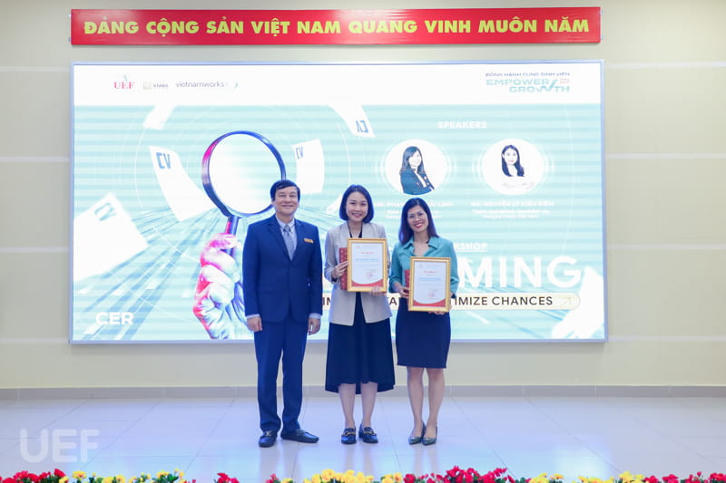 Diễn giả của workshop là các đại diện từ Navigos Group Việt Nam, gồm có bà Phạm Thị Hoài Linh - Giám đốc nhân sự và bà Nguyễn Lý Kiều Kiên - Chuyên viên thu hút nhân tài.