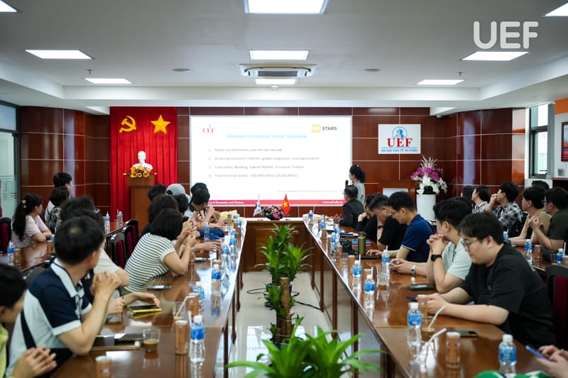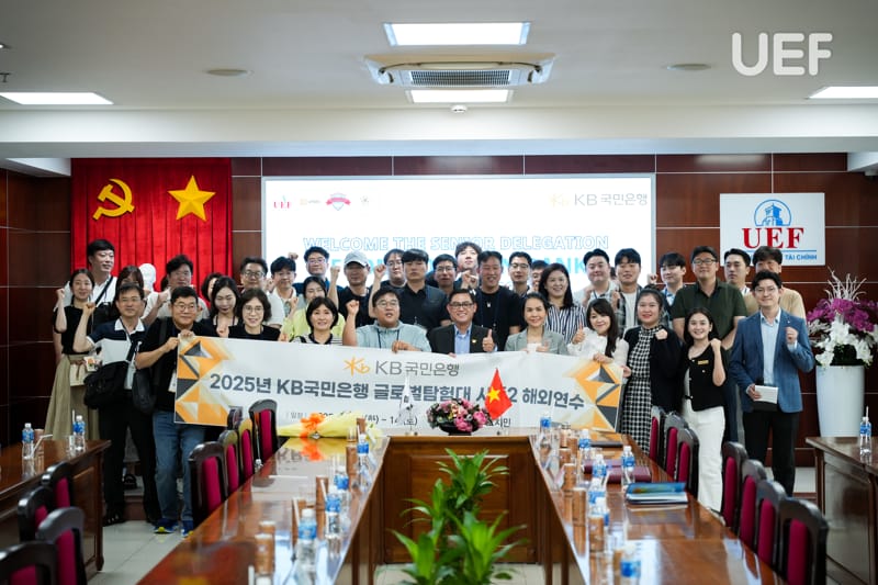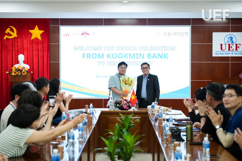 Nhằm mở rộng mạng lưới hợp tác quốc tế và tạo thêm nhiều cơ hội thực tập, làm việc chất lượng cao cho sinh viên, sáng ngày 12/6, UEF đã có buổi đón tiếp và làm việc với đoàn cán bộ cấp cao Ngân hàng Kookmin - Hàn Quốc. Buổi gặp gỡ là bước khởi đầu quan trọng cho các kế hoạch hợp tác chiến lược giữa UEF và một trong bốn ngân hàng lớn nhất xứ sở kim chi.