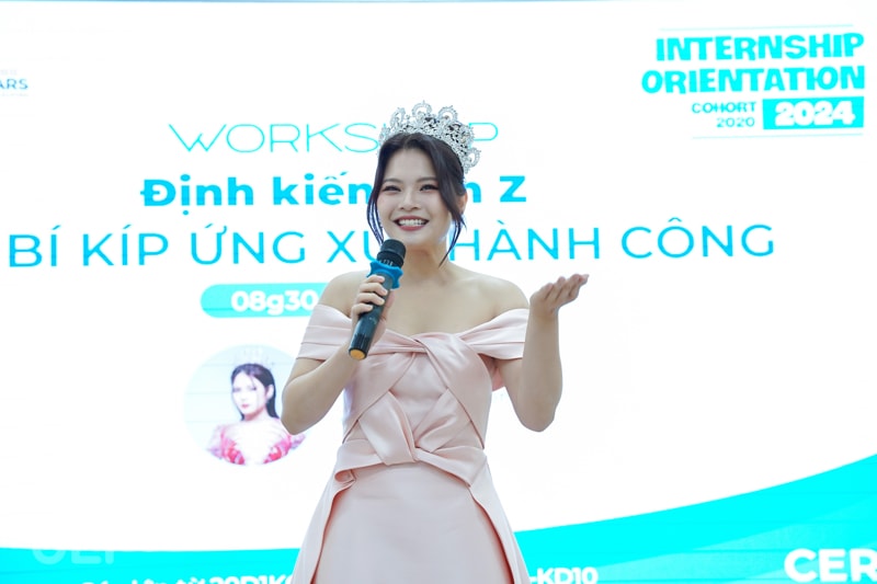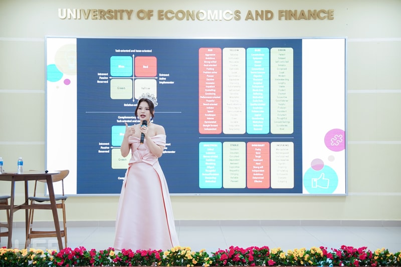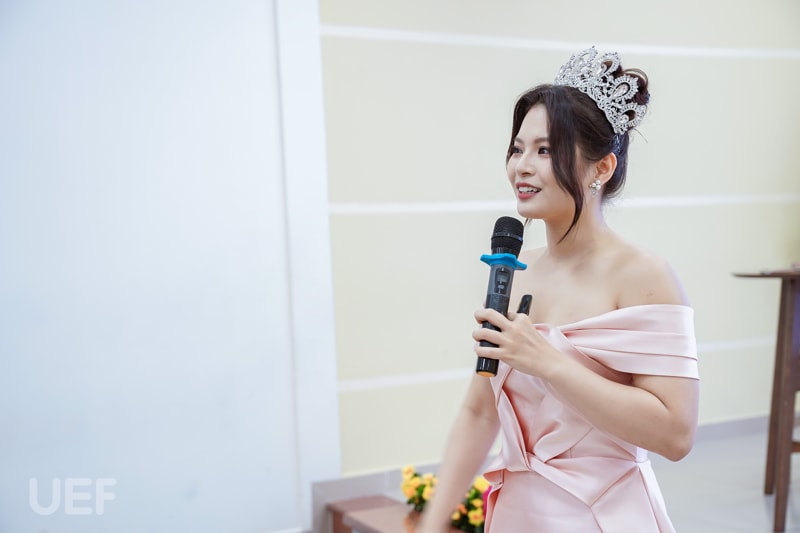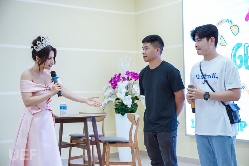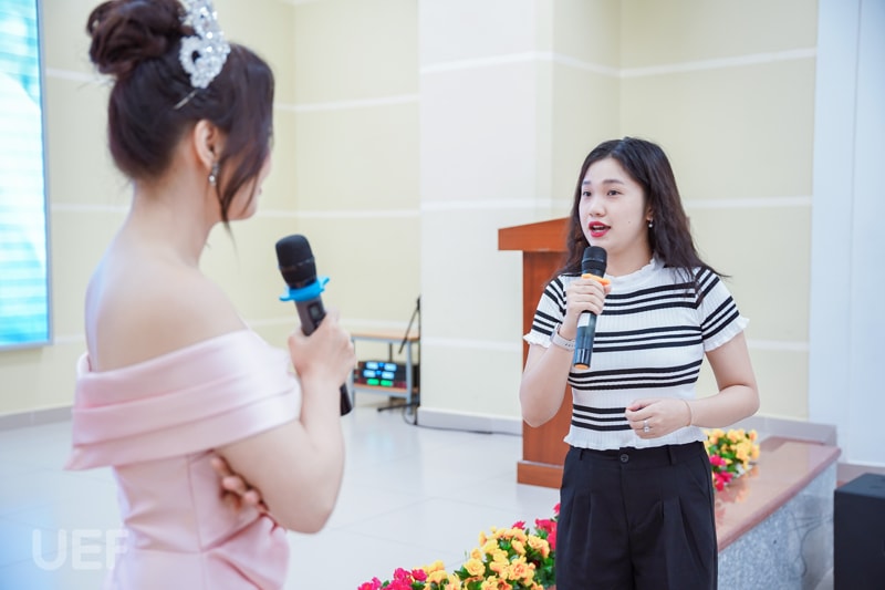 Tại buổi chia sẻ này, các bạn sinh viên cho thấy kỹ năng vượt trội ở độ tuổi “Gen Z" và những vấn đề mong muốn được cải thiện trước kỳ thực tập từ chia sẻ chủ đề đến trả lời câu hỏi. Workshop có sự đồng hành và truyền đạt kinh nghiệm từ Á khôi, MC Giáng Ngọc. Người đẹp đã giúp UEFers cảm nhận rõ hơn về cách ứng xử, giao tiếp chuyên nghiệp của những người có kinh nghiệm lâu năm trong nghề cũng như cách phát ngôn trước đại chúng.