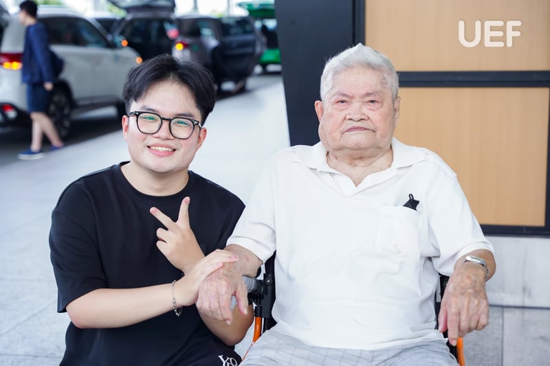 Đặc biệt, sự hiện diện của ông nội bạn Lưu Hoàng Duy (101 tuổi) đã mang đến nhiều cảm xúc. Tuy tuổi cao, ông vẫn đến sân bay để tiễn cháu, trao gửi tình thương và niềm tin sâu sắc. Nhìn cháu trai rạng rỡ trước hành trình mới, ông không giấu được niềm tự hào:“Ông mừng lắm khi thấy Duy có cơ hội đi xa, học hỏi những điều mới. Tuổi già rồi nhưng ông luôn dõi theo từng bước cháu đi, mong cháu mạnh khỏe, thành công và giữ vững ý chí để vượt qua mọi thử thách”.