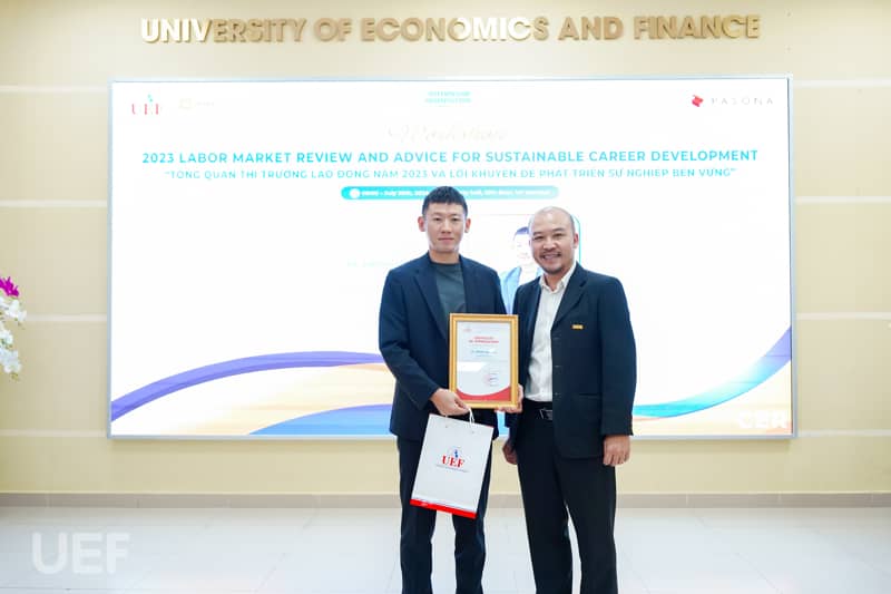 Hiểu được những lo lắng của sinh viên năm cuối trước kỳ thực tập, vào ngày 25/7, Trung tâm Hợp tác doanh nghiệp UEF đã tổ chức buổi workshop: 2023 Labor Market Review and Advice for Sustainable Career Development. Thông qua những chia sẻ giàu tính thực tiễn của Mr. Hiroki Nakano - HR Manager, Pasona Tech Vietnam, UEFers đã được tiếp cận với bức tranh tổng quan về tình hình thị trường lao động trong thời đại mới, đồng thời nắm được những bí quyết để hoàn thiện bản thân, phát triển sự nghiệp.