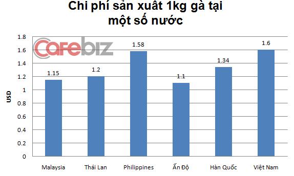 Một trang trại lợn sinh sản quy mô 1.000 nái ở Mỹ chỉ có 1 lao động, còn ở Việt Nam là 15 - 20 người. Một nhân công nuôi gà công nghiệp ở Thái Lan có thể quản lý chuồng gà công nghiệp với quy mô 20.000 con, trong khi công nhân việt nam chỉ nuôi bình quân 5.000 con.