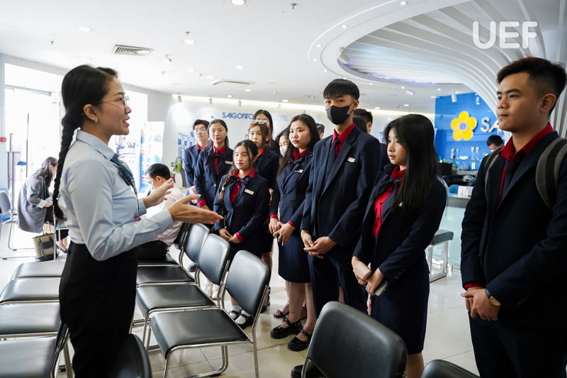 Đến với Lữ hành Saigontourist, các bạn sinh viên Nhà UEF được tham quan qua các phòng ban tại trụ sở chính của đơn vị tại TP.HCM. UEFers được trực tiếp quan sát không gian làm việc, lắng nghe chia sẻ, giới thiệu về nhiệm vụ và chức năng của phòng chăm sóc khách hàng, phòng kinh doanh khách lẻ, phòng kế hoạch và phát triển,...