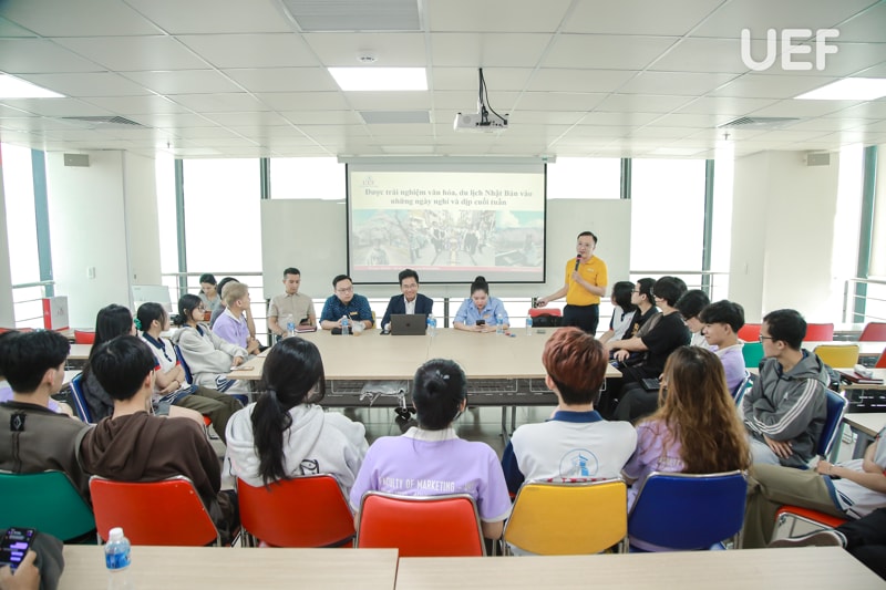 Sáng ngày 29/10, UEF đã tiếp tục tổ chức "Ngày hội thông tin: Chương trình thực tập quốc tế, khám phá Nhật Bản" nhằm mang đến cho sinh viên ngành Marketing góc nhìn tổng quan và cụ thể về quá trình thực tập tại đất nước mặt trời mọc. Đây là một trong những cơ hội học tập quý báu, giúp sinh viên mở rộng trải nghiệm nghề nghiệp thực tế và nâng cao năng lực làm việc xuyên quốc gia.