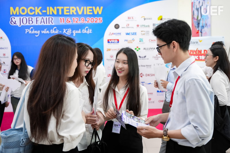Mock-Interview & Job Fair vẫn đang tiếp tục cho đến hết ngày 12/9, hứa hẹn mang đến thêm nhiều cơ hội để sinh viên thử sức, mở rộng kết nối và khẳng định năng lực của bản thân. Với sự chuẩn bị chu đáo của Nhà trường và sự tham gia nhiệt tình từ doanh nghiệp, chương trình tiếp tục được kỳ vọng sẽ trở thành bệ phóng vững chắc, giúp UEFers tự tin bước vào hành trình nghề nghiệp rộng mở phía trước.