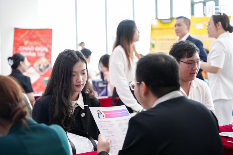 Ngày hội có sự góp mặt của nhiều doanh nghiệp, tập đoàn uy tín trong và ngoài nước như: MB Bank, VPBank, Sacombank, Lotte Mart, Vietcombank, JobsGO, NEXTTECH,... Qua đó, UEF cho thấy rõ thế mạnh trong việc xây dựng hệ sinh thái kết nối doanh nghiệp, tạo điều kiện để sinh viên tiếp cận môi trường làm việc đa dạng.