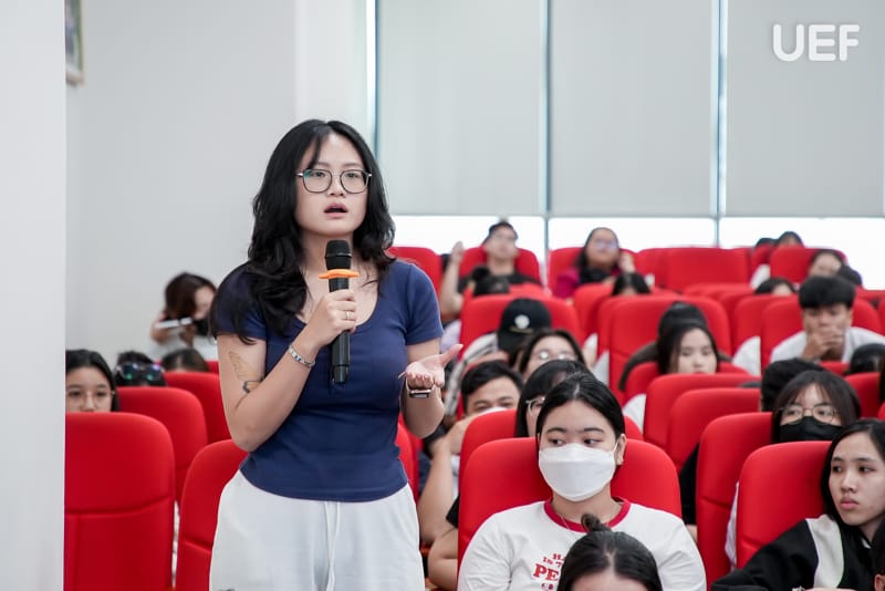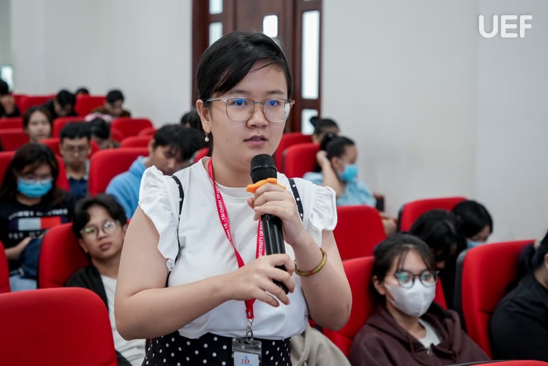 Sinh viên đưa ra thắc mắc và được diễn giả giải đáp cặn kẽ