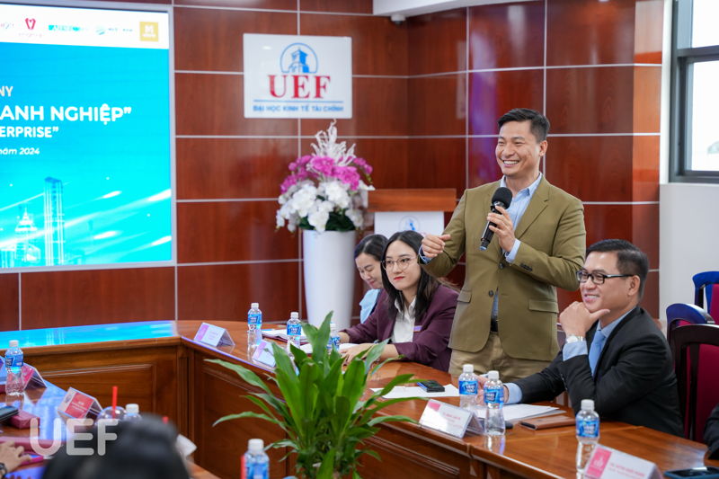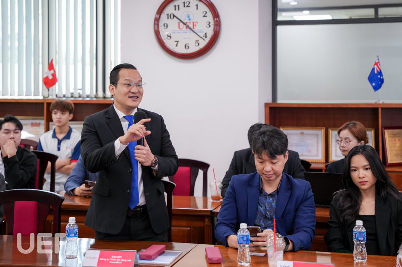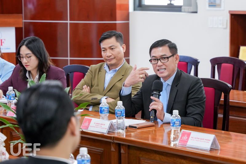 Mở đầu chương trình, TS. Nhan Cẩm Trí chia sẻ: "Hợp tác doanh nghiệp là một trong những hoạt động chủ chốt của UEF nhằm đào tạo nguồn nhân lực chất lượng cao, đáp ứng nhu cầu của xã hội. Hy vọng các doanh nghiệp sẽ tham gia hợp tác bằng đa dạng hình thức. Trước hết, việc tiếp nhận sinh viên UEF đến thực tập, kiến tập là cơ hội để các bạn áp dụng kiến thức đã học vào thực tế, nâng cao kỹ năng chuyên môn và tích lũy kinh nghiệm làm việc".