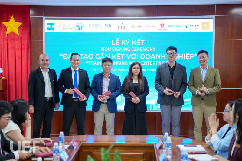 UEF không ngừng kết nối với doanh nghiệp để mở rộng cơ hội học tập thực tế, thực tập và việc làm cho sinh viên. Sáng ngày 11/6, UEF tiếp tục có buổi làm việc với nhiều đơn vị và đi đến ký kết hợp tác MOU với 9 doanh nghiệp đang hoạt động ở đa lĩnh vực. Mạng lưới đối tác của Nhà trường theo đó ngày càng được mở rộng.