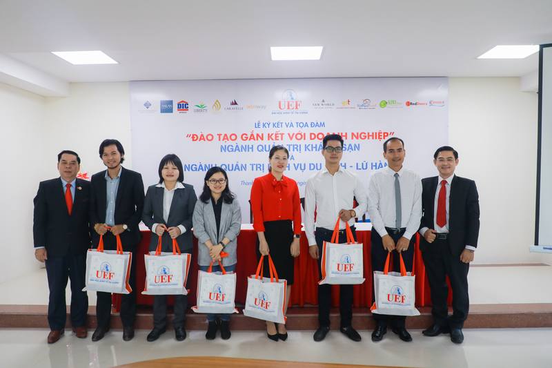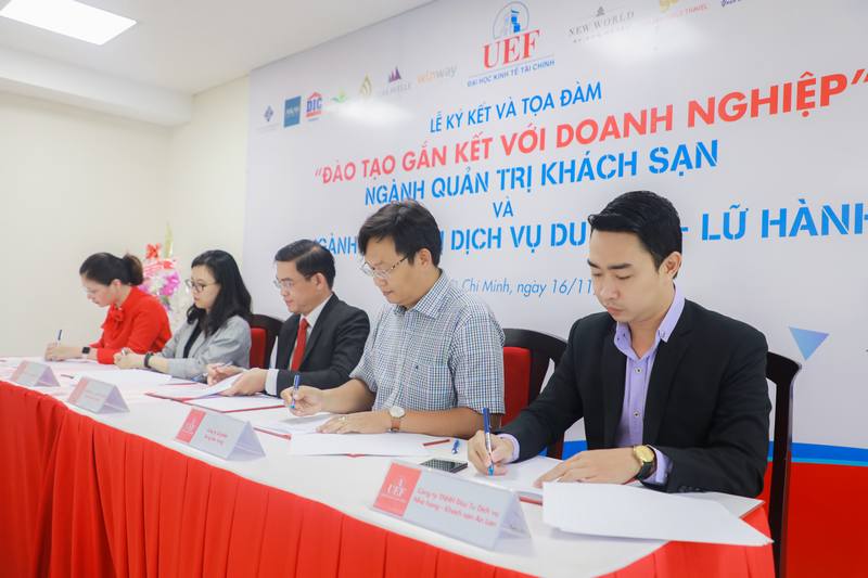 Sáng nay (16/11), Trường Đại học Kinh tế - Tài chính thành phố Hồ Chí Minh (UEF) đã tổ chức Lễ ký kết MOU và tọa đàm “Đào tạo gắn kết với doanh nghiệp" ngành Quản trị khách sạn và ngành Quản trị dịch vụ du lịch - lữ hành.