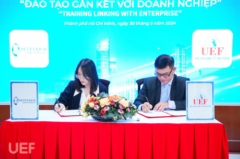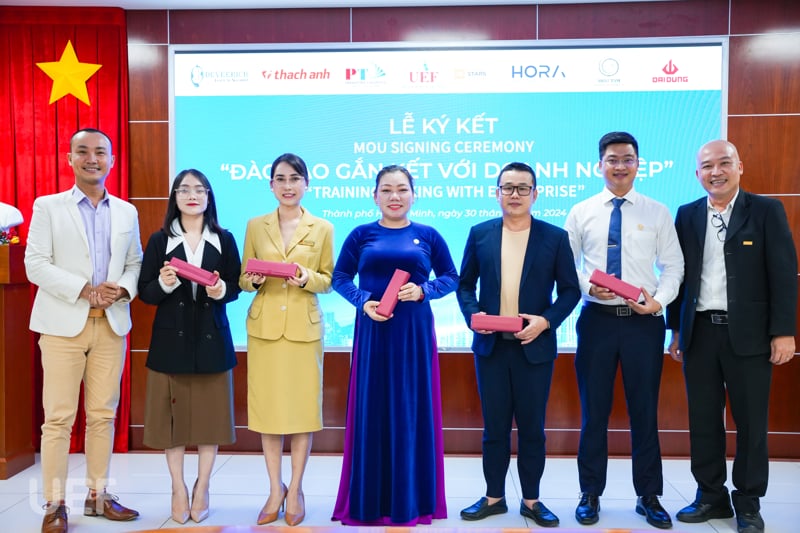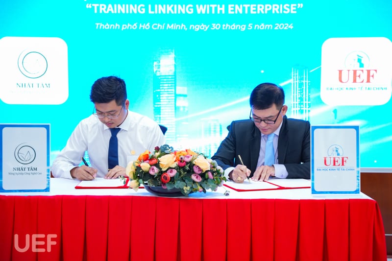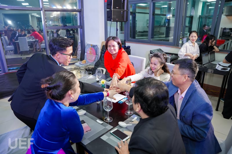 Trên tinh thần ấy, vào chiều 30/5, Trung tâm Hợp tác doanh nghiệp UEF đã tổ chức Lễ ký kết MOU “Đào tạo gắn kết với doanh nghiệp và Business matching - Gala Doanh nhân" cùng 5 doanh nghiệp, đẩy mạnh các hoạt động hợp tác đào tạo trên các lĩnh vực marketing, tổ chức sự kiện, kết nối giáo dục, kết nối công nghệ, logistics và quản lý chuỗi cung ứng trong thời gian tới. Sự kiện thêm điểm nhấn với các hoạt động Business Matching cùng Gala doanh nhân. Khoảnh khắc đặt bút ký kết giữa đại diện UEF và các doanh nghiệp đã chính thức mở ra cơ hội hợp tác, đẩy mạnh giao lưu, tạo môi trường học tập mới cho sinh viên đang theo đuổi những khối ngành thực chiến này.