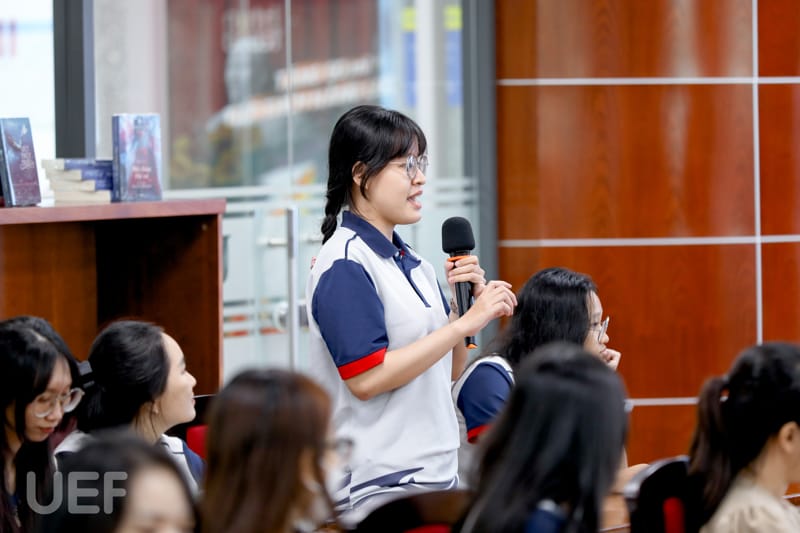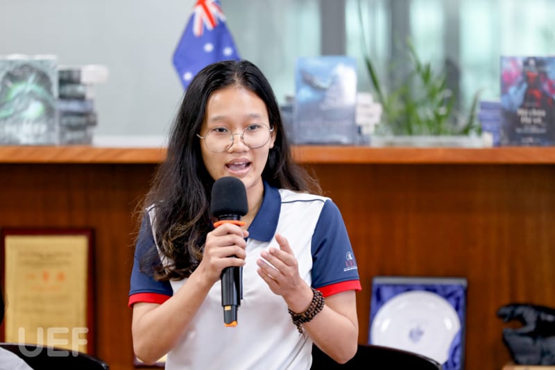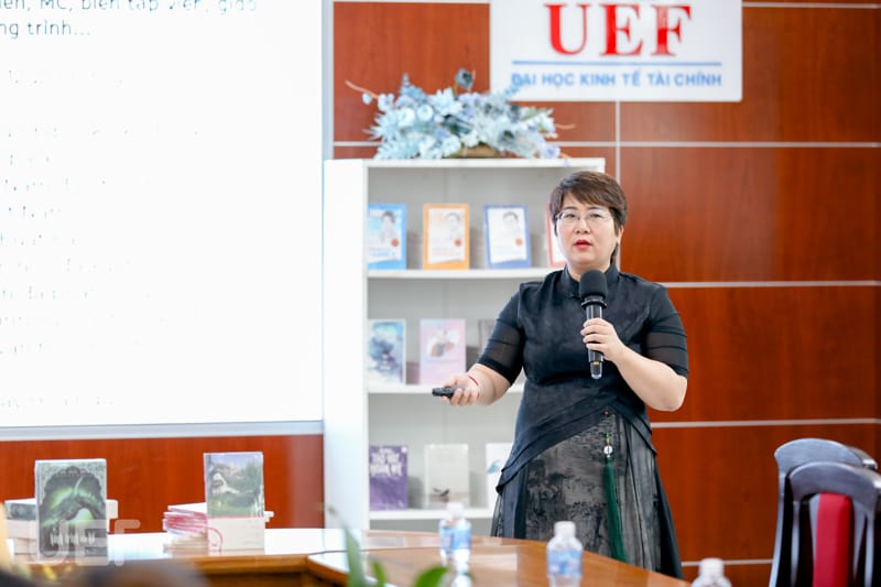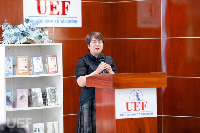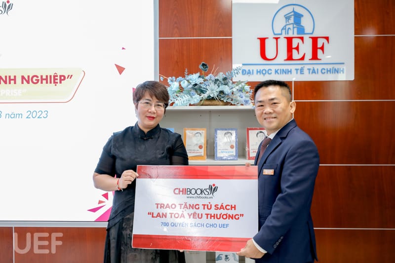 Đại diện Công ty Cổ phần Văn hóa Chi, bà Nguyễn Lệ Chi cũng bày tỏ niềm vui khi có cơ hội hợp tác cùng UEF: “Với cơ sở là xuất bản sản phẩm tri thức, chúng tôi mong muốn lan tỏa văn hoá đọc đến sinh viên, cung cấp nhiều kiến thức bên cạnh chuyên môn để các bạn có thêm tri thức mới. Qua các hoạt động viết lách, giao lưu với tác giả, các bạn sẽ được truyền cảm hứng nhiều hơn. Bên cạnh đầu sách, những câu chuyện đằng sau cuốn sách mà tác giả tạo ra sẽ mang đến nhiều điều thú vị cho sinh viên”. Đồng thời, bà Lệ Chi đã trao tặng 700 quyển sách về văn học, văn hóa và kỹ năng sống cho thư viện của UEF.
