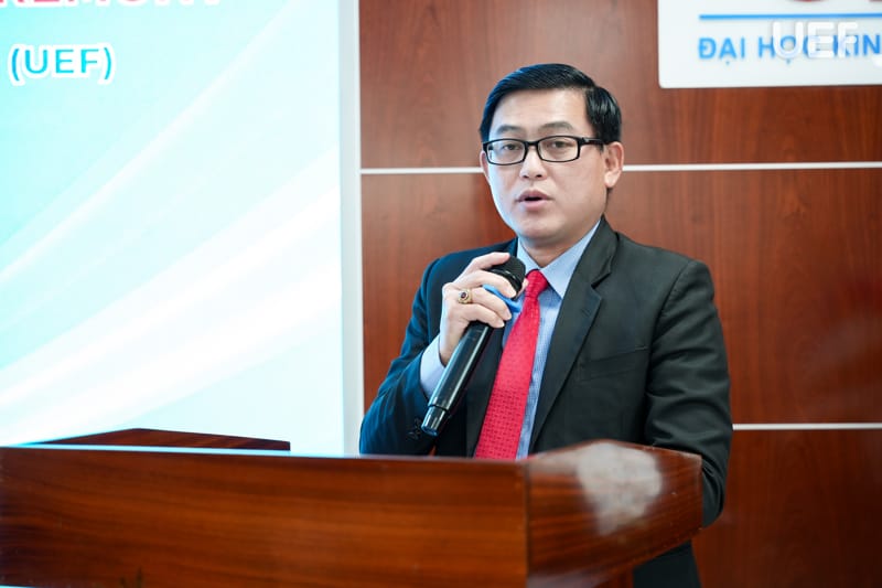 Phát buổi tại buổi lễ, TS. Nhan Cẩm Trí đã chia sẻ tổng quan về UEF và chương trình quốc tế nổi bật của trường, đồng thời nhấn mạnh thỏa thuận hợp tác này là minh chứng cho chiến lược mở rộng hợp tác quốc tế của UEF, góp phần nâng cao trải nghiệm toàn cầu cho sinh viên và giảng viên.