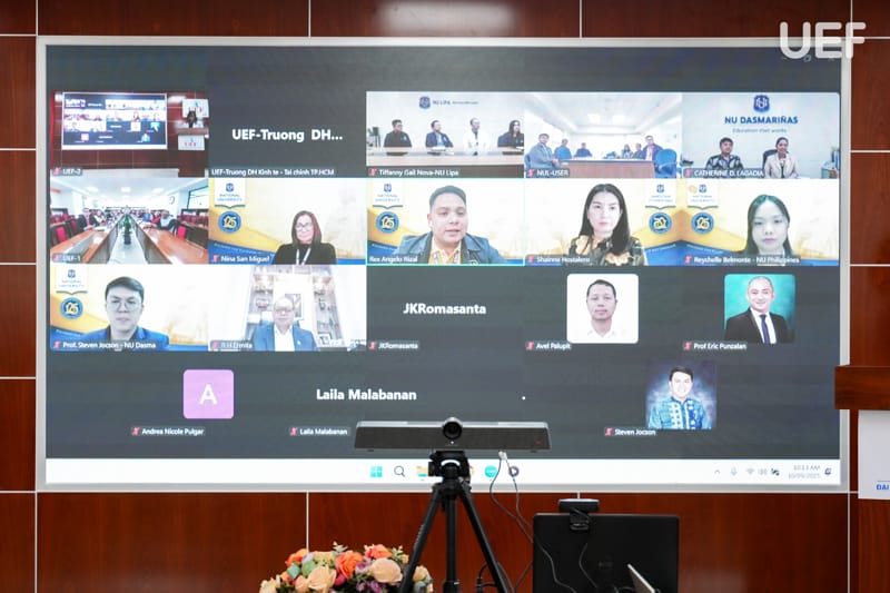 Sáng ngày 10/9, UEF đã tổ chức buổi ký kết MOU trực tuyến với National University (NU Manila) - một trong những trường đại học tư thục lâu đời và uy tín nhất tại Philippines. Buổi lễ diễn ra trong không khí trang trọng, khẳng định cam kết hợp tác chiến lược giữa hai trường trong năm học mới.