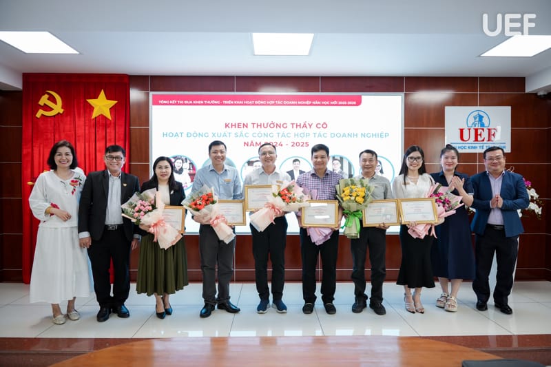 Tại chương trình, Nhà trường đã vinh danh các tập thể, cá nhân xuất sắc trong công tác hợp tác doanh nghiệp năm học vừa qua, gồm tập thể Khoa Ngôn ngữ và Văn hóa quốc tế và các cá nhân có nhiều đóng góp như TS. Nguyễn Thị Lan - Trưởng ngành Ngôn ngữ Trung Quốc, Phó Trưởng khoa Ngôn ngữ và Văn hóa quốc tế; ThS. Trần Hoàng Nam - Trưởng ngành Bất động sản; ThS. Cao Đỗ Quyền - Trợ lý ngành Ngôn ngữ Nhật; Cô Hoàng Thị Hằng - Trợ lý Trưởng khoa Công nghệ thông tin; ThS. Nguyễn Hồng Thạch - Giảng viên Khoa Marketing, ThS. Trần Triệu Quân - Giảng viên Khoa Quản trị kinh doanh. Đây là sự ghi nhận nỗ lực của các đơn vị, cá nhân trong việc đưa hoạt động hợp tác doanh nghiệp trở thành một phần không thể thiếu trong đào tạo tại UEF.