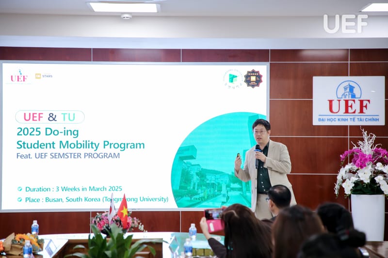 Sáng ngày 28/12, Trung tâm Hợp tác doanh nghiệp đã tổ chức workshop "Do-ing Education and Student Mobility Opportunities" với sự tham dự của lãnh đạo Trường Đại học Tongmyong - Hàn Quốc (TU). Từ mối quan hệ hợp tác chương trình học kỳ quốc tế trước đó, đại diện TU đã chia sẻ cơ hội “xuất ngoại” và khám phá văn hóa Hàn Quốc cho sinh viên UEF vào năm 2025.