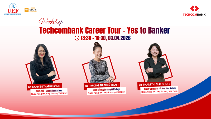 Nhằm mang đến cho sinh viên góc nhìn thực tế về ngành ngân hàng và định hướng rõ ràng hơn cho hành trình nghề nghiệp, Trung tâm Hợp tác Doanh nghiệp phối hợp cùng Ngân hàng TMCP Kỹ thương Việt Nam (Techcombank) tổ chức workshop “Techcombank Career Tour - Yes to Banker”. Chương trình không chỉ giúp sinh viên hiểu rõ hơn về công việc, môi trường và cơ hội phát triển trong ngành mà còn tạo điều kiện kết nối trực tiếp với doanh nghiệp.