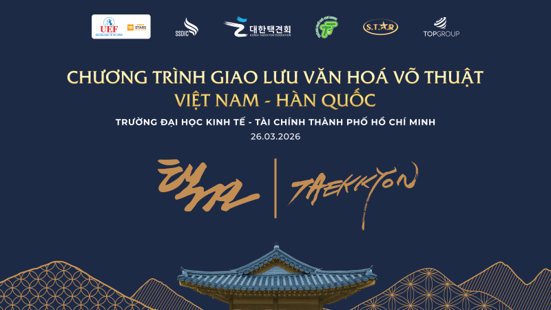 Chương trình sẽ diễn ra vào lúc 13:30, ngày 26/03/2026 tại Lầu 6, Trụ sở 141 Điện Biên Phủ, Phường Gia Định, TP.HCM. Đây là dịp để sinh viên tiếp cận gần hơn với văn hóa Hàn Quốc thông qua võ thuật, đồng thời nâng cao thể chất, tinh thần và kỹ năng tương tác trong môi trường đa văn hóa.