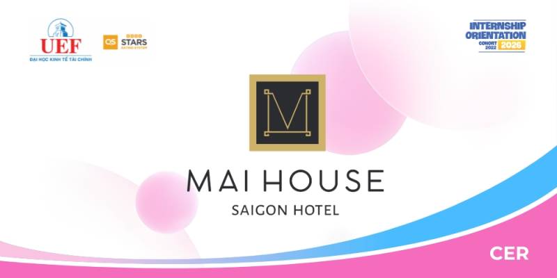 Mai House Saigon Hotel là khách sạn 5 sao tọa lạc tại trung tâm TP Hồ Chí Minh, nổi bật với phong cách kiến trúc tinh tế, dịch vụ chuẩn mực và không gian lưu trú sang trọng. Với định hướng phát triển nguồn nhân lực trẻ, Mai House Saigon không ngừng tạo điều kiện để sinh viên được tiếp cận môi trường làm việc chuyên nghiệp, rèn luyện kỹ năng thực tế và từng bước định hình con đường nghề nghiệp trong lĩnh vực khách sạn – du lịch cao cấp.