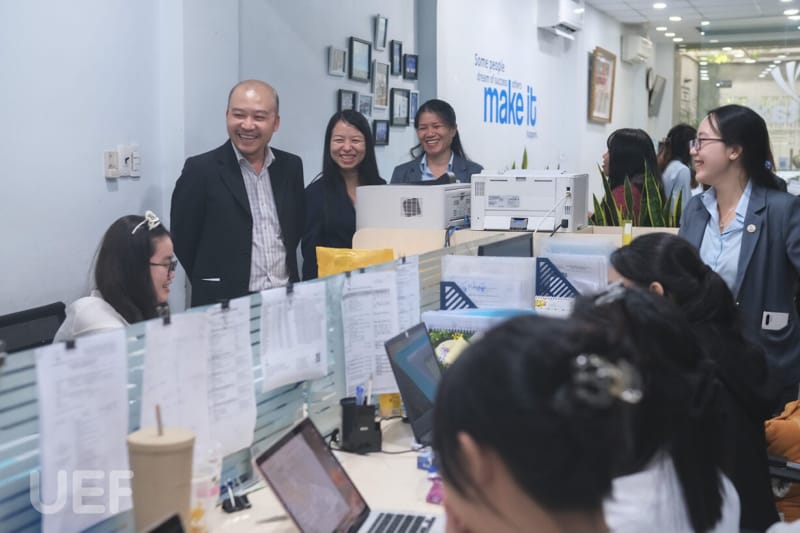 Vào ngày 24/10, Đoàn lãnh đạo UEF đã có chuyến thăm sinh viên đang thực tập tại Công ty TNHH Real Bean Coffee và Công ty Cổ phần Đào tạo và Tư vấn thuế Việt Nam (VTAX). Buổi gặp gỡ đã góp phần tạo động lực, giúp các bạn tiếp tục hoàn thành tốt nhiệm vụ, đồng thời thúc đẩy mối quan hệ hợp tác giữa UEF với các doanh nghiệp uy tín trên địa bàn TP.HCM.