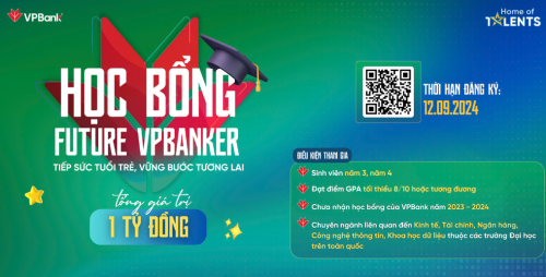Chương trình Học Bổng Future VPBanker 2024 là hoạt động nằm trong chiến lược phát triển nguồn nhân lực “Home of Talents”, kiến tạo VPBank trở thành Miền đất Nhân tài,...