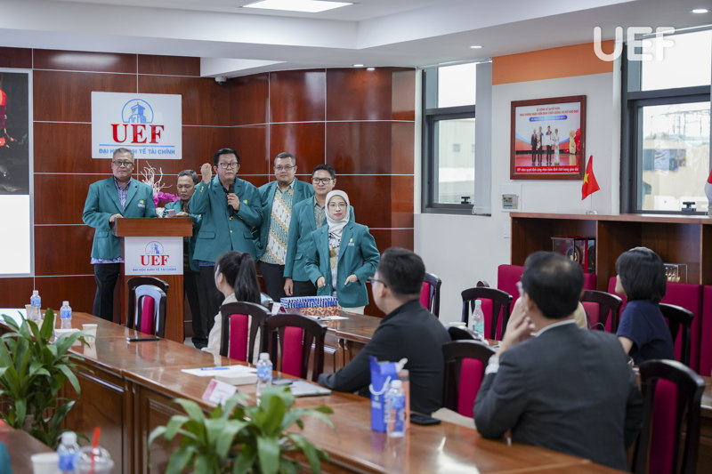 Lễ chào đón đoàn diễn ra trang trọng với sự tham dự của Hội đồng trường, Ban giám hiệu cùng lãnh đạo các đơn vị, giảng viên và sinh viên UEF. Về phía Perbanas Institute có GS. Haryono Umar - Phó Hiệu trưởng, TS. Tiolina Evi - Viện trưởng Viện Sau đại học, TS. Mildawani - Giảng viên cùng 18 nghiên cứu sinh.