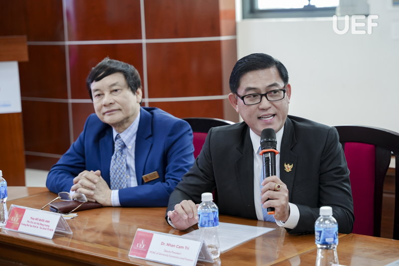 Đại diện Perbanas Institute, GS. Haryono Umar cũng gửi lời cảm ơn sâu sắc trước sự đón tiếp nồng hậu và bày tỏ mong muốn tăng cường hợp tác song phương trong thời gian tới. Sự gặp gỡ lần này là dịp để tái khẳng định mối quan hệ hợp tác vốn đã thành công trước đây - khi đoàn sinh viên Perbanas từng đến thực tập tại UEF vào tháng 2 vừa rồi. Đây cũng là bước đệm để hai bên cùng phát triển những dự án mới, đặc biệt trong các lĩnh vực nghiên cứu, giảng dạy và trao đổi học thuật.
