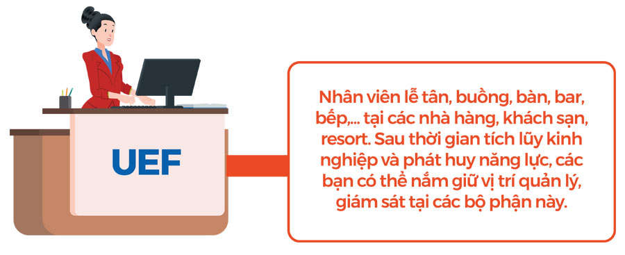 Nếu bạn sở hữu những tố chất này và muốn xây dựng sự nghiệp vững chắc trong ngành dịch vụ – khách sạn, hãy sẵn sàng chinh phục những cơ hội tuyệt vời cùng UEF! (in đậm font phần này giùm em nha)