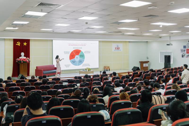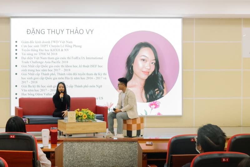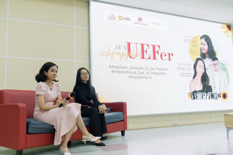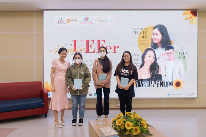 Accompanying the program was the presence of Ms. Nguyen Phuong Anh - Founder of Happier Me & Chum; Ms. Dang Thuy Thao Vy - 22 years old, Sales Director at FWD Vietnam and Ms. Tran Thi My Phuong - Deputy Director of UEF Community Connection Center.