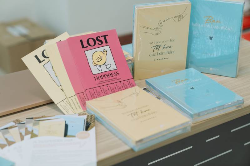 At the talkshow "A HAPPIER UEFER", speaker Phuong Anh also brought to the students a set of notebooks "Becoming a better version of yourself - A Happier Me" creating emotional energy through reading books or transform thoughts through writing, images or drawings.