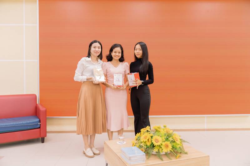 From left to right: Ms. Tran Thi My Phuong - Deputy Director of UEF Community Connection Center; Ms. Nguyen Phuong Anh - Founder of Happier Me & Chum; Ms. Dang Thuy Thao Vy - 22 years old, Sales Director at FWD Vietnam
