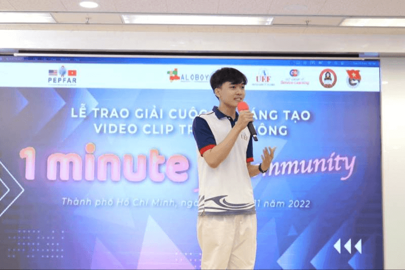 “1 Minute For Community” is a contest organized by Social Enterprise Alo Boy Vietnam in collaboration with UEF Center for Community Connection (UEF Center for Community Engagement) and University of Social Sciences and Humanities (HCMUSSH). for all students interested in producing short video clips to increase students' participation in digital communication activities towards ending the HIV epidemic and raising students' awareness about HIV/AIDS and other diseases. sexually transmitted.
