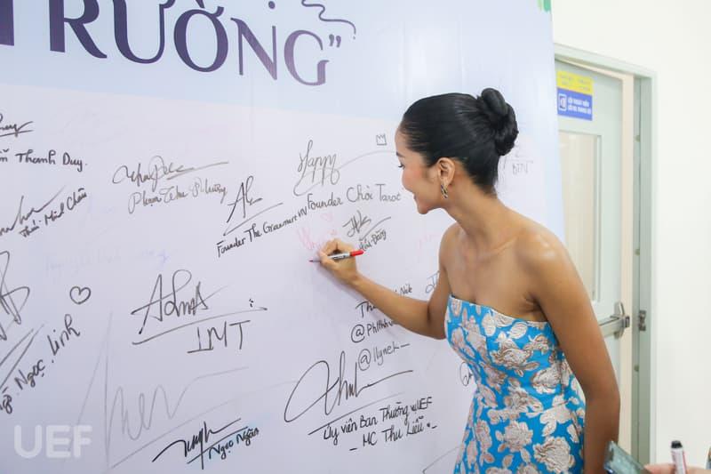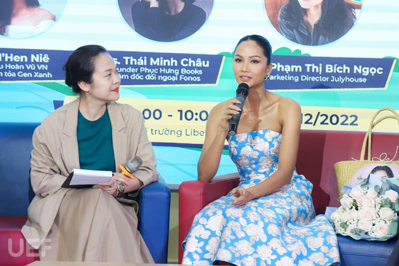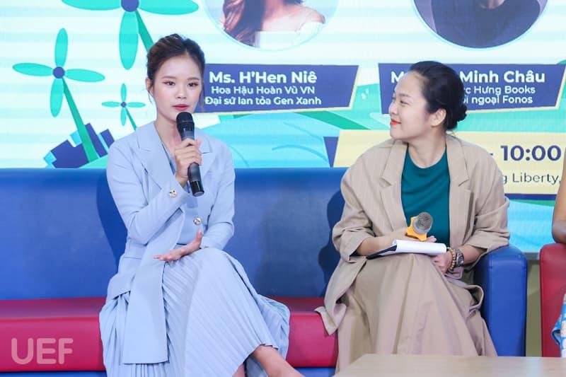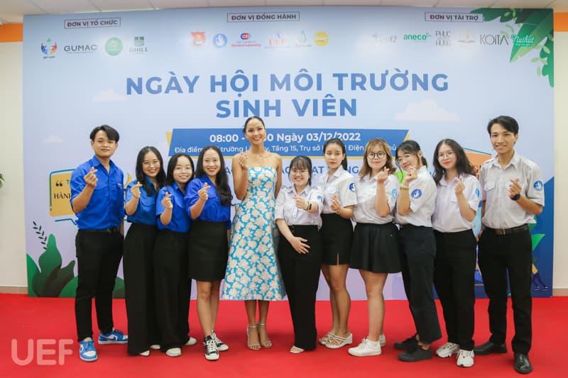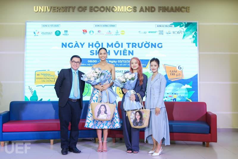 Accompanying UEF students was H'Hen Niê - Miss Universe Vietnam 2017, top 5 Miss Universe 2018; Ms. Thai Minh Chau - CEO/Founder of Phuc Hung Book, Foreign Affairs Director of Fonos; Ms. Pham Thi Ngoc Bich - Marketing Director of July House and especially Dang Thi Thom - 2nd year student of UEF Faculty of Public Relations and Communication, Founder of social enterprise Green Gen - owner of the implementation idea this program.