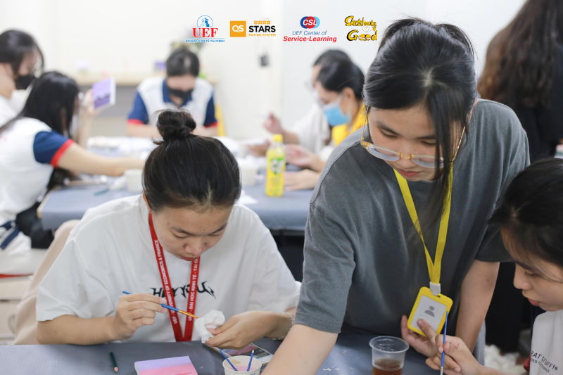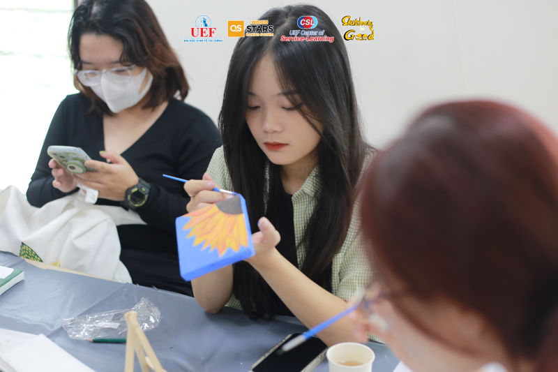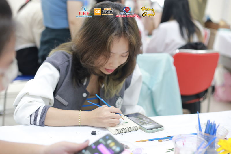 Along with that, we also received "warm compliments" from Hai My: "I feel very happy to be able to participate in an entertaining activity and relieve stress after many hours of studying. The workshop is practical, I like to draw and take the products home with me. The organizers are lovely, each table will have one supporter to assist. If I were to rate the Workshop on a scale of 10, I would rate it 9/10, and the remaining 1 point would be for you guys to open more meaningful and interesting Workshops.”