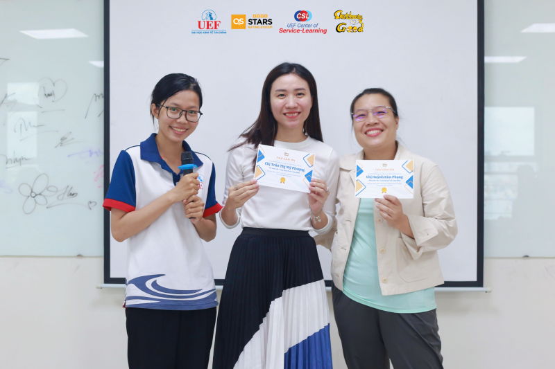 Thanks to Ms. My Phuong - Director, Center of Service-Learning UEF (UEF CSL) (middle) and Ms. Kim Phung-Coordinator, Center of Service-Learning UEF (right)