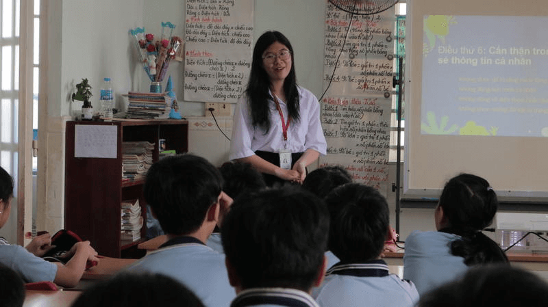 Huynh Ngoc Yen Nhu is presenting the seminar “Be safe when using social media”