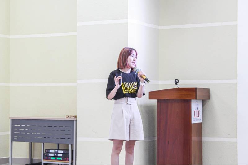With a new and quite special topic, the Center of Service-Learning and Binance Academy intend to bring UEF students new perspectives and broaden their knowledge in this growing field. In the opening speech, Ms. Tran Thi My Phuong shared,