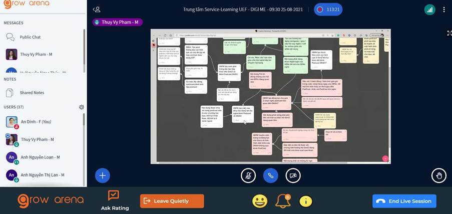 Each small group was divided based on the objectives of the project and practised developing ideas with the guidance of Ms. Vy and her experts. This is the time when the students enhanced their learning abilities and creativity with many "Matrix" ideas being born. Despite having acquainted themselves with new tools and platforms in the first place, they quickly grasped and learnt to make good use of the knowledge from the lecture. According to Ms. Thuy Vy, in this section, each group showed its own characteristics in the way of building the "Wall of Idea" to solve problems.