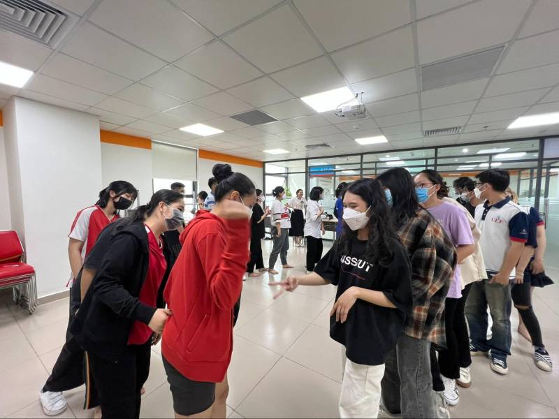 Ms Phung then conducted the game in the "normal" version: playing with the next person, whoever loses has to sit down, and therefore cannot participate in the game, and whoever wins will continue to fight with the others. The game proceeds until the winner is announced. Although it was exciting, those who lost from the first time would certainly want to get in the game again.