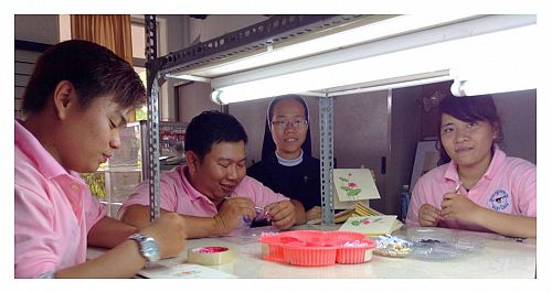 Một trong các hoạt động nghề của Happy Sun là làm đồ thủ công, mỹ nghệ (xâu hạt cườm, tranh giấy cuộn…), và các em chứng tỏ được kỹ năng rất khéo léo trong công việc...