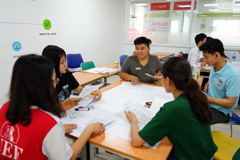 Phần làm việc nhóm giúp các bạn sinh viên gắn kết hơn và cùng nhau hoàn thiện kế hoạch tiếp theo cho dự án