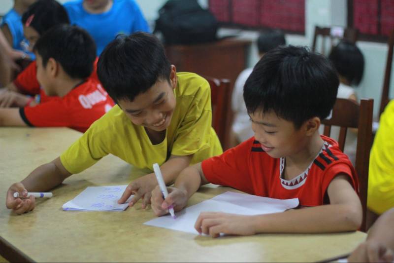 Khoảnh khắc hồn nhiên của các em trong giờ học tại Làng trẻ em SOS