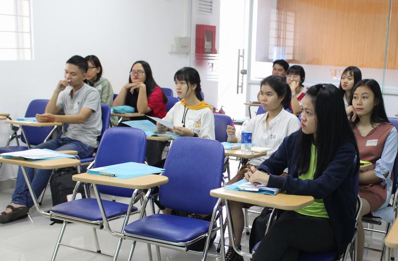 Các bạn sinh viên có tố chất lãnh đạo tham gia buổi tập huấn đầu tiên.