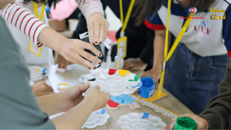 Chi tiết hơn về các workshop gây quỹ của chúng mình, hành trình của Sketchnote For Good ở mùa 5 này gắn kết với chuỗi workshop mang tên “Mầm Cây Viết Chuyện Tình”. Khởi đầu cho chuỗi hoạt động là chương trình mang tên “Vẽ Mầm”, những mầm cây xinh xắn được ươm trồng trong những chậu cây đất nung xinh đẹp đã được trang trí bởi các bạn sinh viên dễ thương. Tiếp nối đó, những chiếc ví đựng bút đầy màu sắc đã được ra đời từ những bàn tay họa sĩ của UEFer tham gia buổi workshop “Vẽ Viết”. Đặc biệt, để hưởng ứng Ngày Môi trường Trái Đất, những mầm cây xinh xắn và những chậu đất nung đã quay lại với buổi hoạt động mang tên ‘ Vẽ chuyện’. Và đó cũng là buổi chương trình khép lại cho mùa 5 đầy màu sắc của dự án. Trong xuyên suốt chuỗi workshop, dự án Sketchnote for good đã luôn cố gắng đồng hành và hỗ trợ các bạn tham gia, đồng thời với được sự chuyên chú, tỉ mỉ và cả tình yêu cộng đồng của mọi người, chúng mình đã ghi nhận được rất nhiều thành phẩm tuyệt vời.