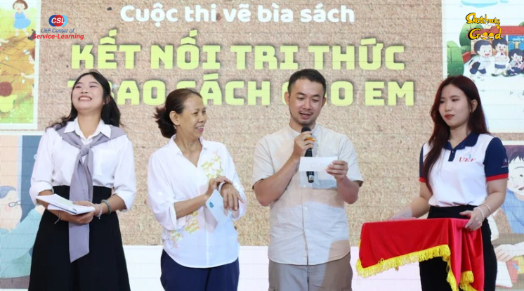 Hình 7. Đối tác trao giải thưởng cho người chiến thắng của “Cuộc thi vẽ bìa”.