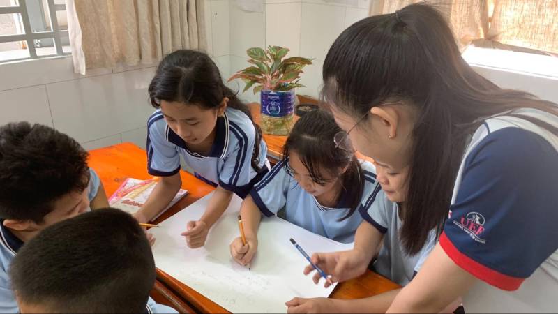 Các em vui vẻ trong những tiết học về tư duy phản biện.