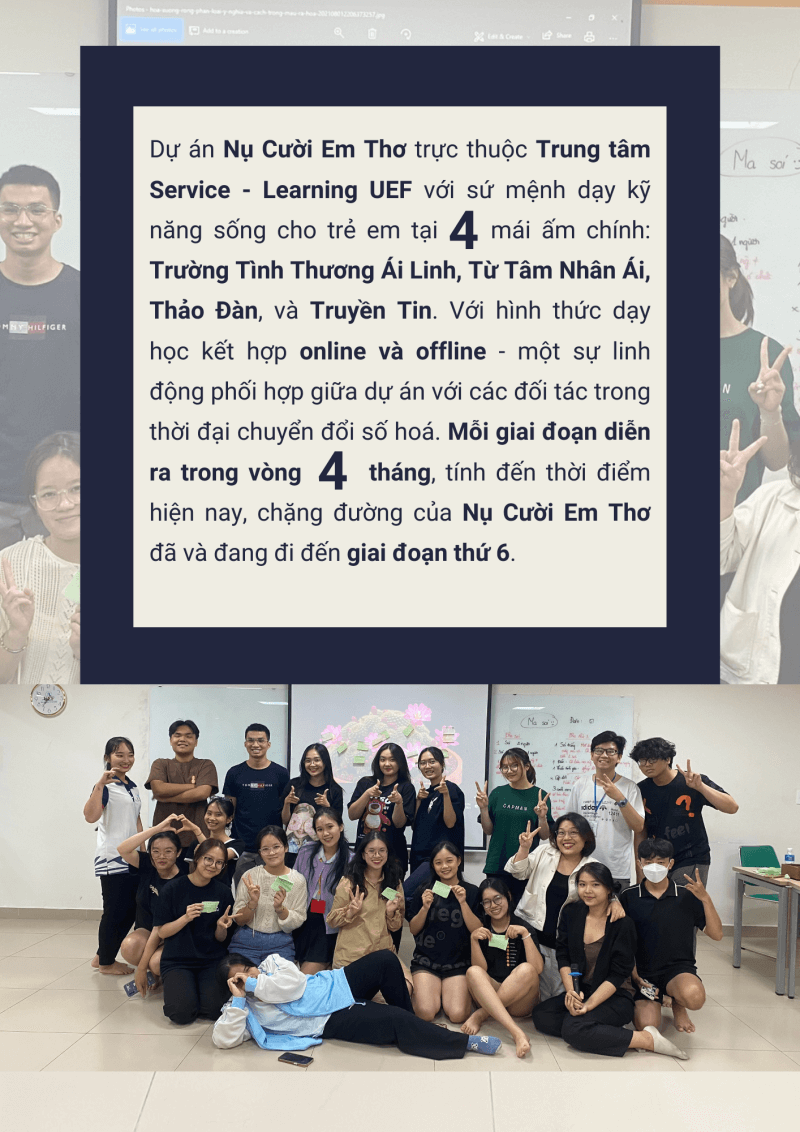 Cuối cùng, Nụ Cười Em Thơ xin được gửi lời cảm ơn đến quý thầy cô, sinh viên UEF đã đồng hành ủng hộ và tất cả thành viên của “Vương quốc Mặt Trời” đã hoàn thành nhiệm vụ của mình một cách trọn vẹn nhất. Hứa hẹn trong tương lai, dự án Nụ Cười Em Thơ sẽ kết nối với nhiều bạn sinh viên UEF hơn, nhằm tiếp tục hành trình lan tỏa yêu thương và đem lại giá trị cho các mái ấm.