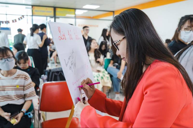 Hoạt động giao lưu, kết nối “Hỏi Để Thích - Thích Rồi Thì Thương - Thương Thì Kết Nối Và Đồng Hành” được diễn ra vô cùng nhộn nhịp. Lúc này, tầng 6 UEF nhường không gian cho những “lời tỏ tình” chân thành, những tâm tư tình cảm dễ thương. Có những dự án đã trở thành đối tượng nhận được lời "tỏ tình" và mong muốn cộng tác từ các thành viên tham gia chương trình tổng kết cuối năm học.