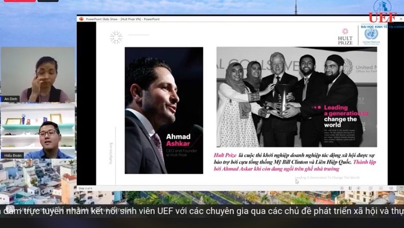 Được biết đây cũng là hoạt động khép lại chuỗi Hội thảo online LEARN.SHARE.GROW do Trung tâm Kết nối cộng đồng UEF tổ chức nhằm kết nối các chuyên gia với các bạn sinh viên qua các chủ đề phát triển xã hội và thực hành kinh doanh bền vững.